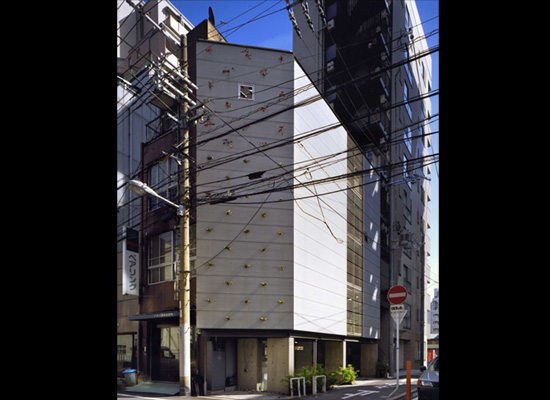 大阪市中央区の10坪弱の狭小敷地に建つ当事務所ビルである。